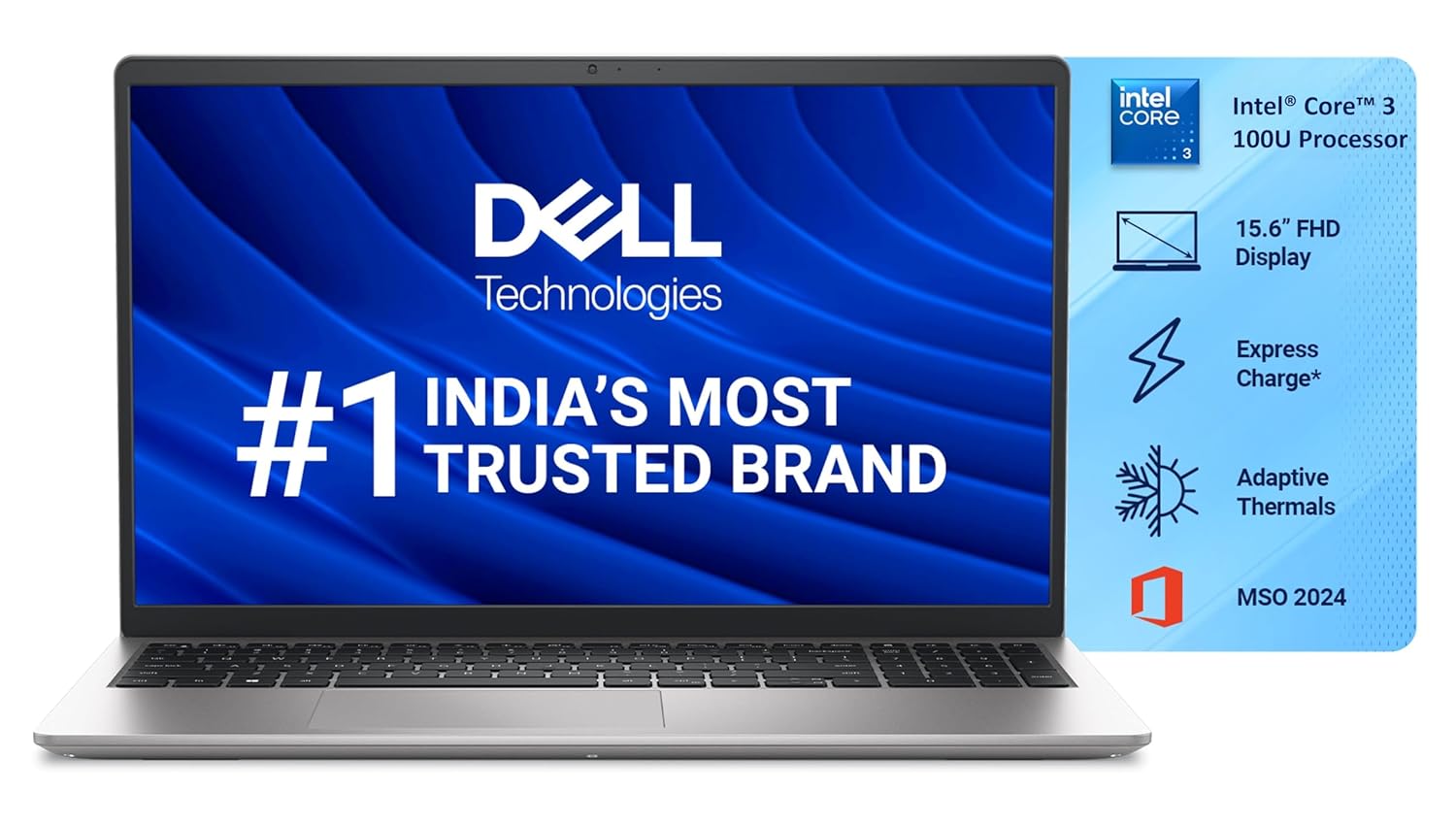 New Dell 15 Laptop, 14th Gen Intel Core 3 Processor, 8GB, 512GB,Intel UHD Graphics Graphics, 15.6" FHD 120Hz IPS 250 nit Display, Standard Keyboard, Win 11 + Office H&S 2024, Platinum Silver, 1.63kg